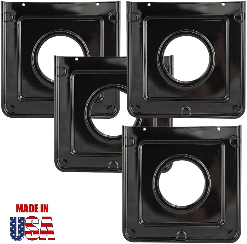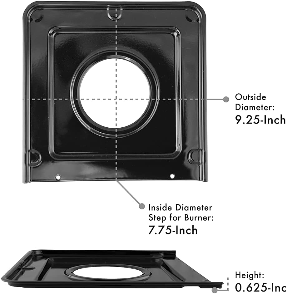 These 9" drip pans fit many popular stove brands including Admiral, Amana, Athens, Brown, Bryan-Hughes, Caloric, Frigidaire, GE, Gibson, Hardwick, Hotpoint, Jenn Air, Kelvinator, Kenmore, KitchenAid, Magic Chef, Maytag, RCA, Tappan, Whirlpool, and White-Westinghouse. However you should ALWAYS MEASURE YOUR PANS to ensure this is the proper fit! These pans are 6/10" high.